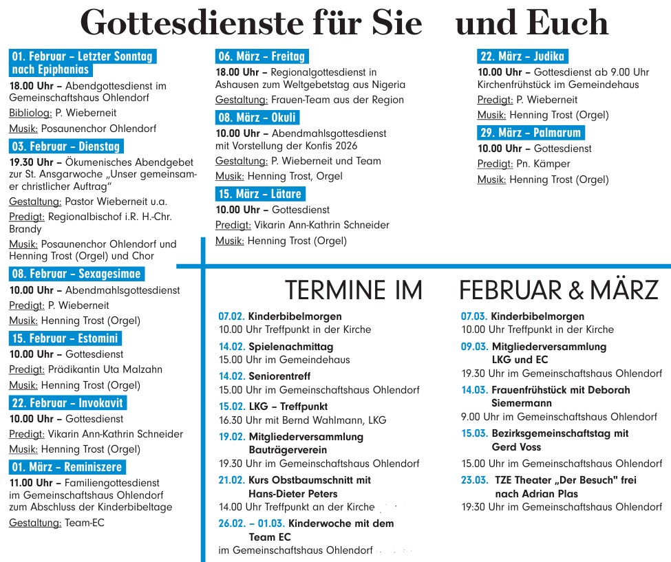Die Kirchengemeine Ramelsloh lädt alle Jugendlichen aus Ramelsloh und Ohlendorf, die nach den Sommerferien in die 7. Klasse kommen, recht herzlich zum Konfirmandenunterricht ein. Der Unterricht für die neuen Vorkonfirmanden wird alle vierzehn Tage montags von 16.30-18.00 Uhr stattfinden.